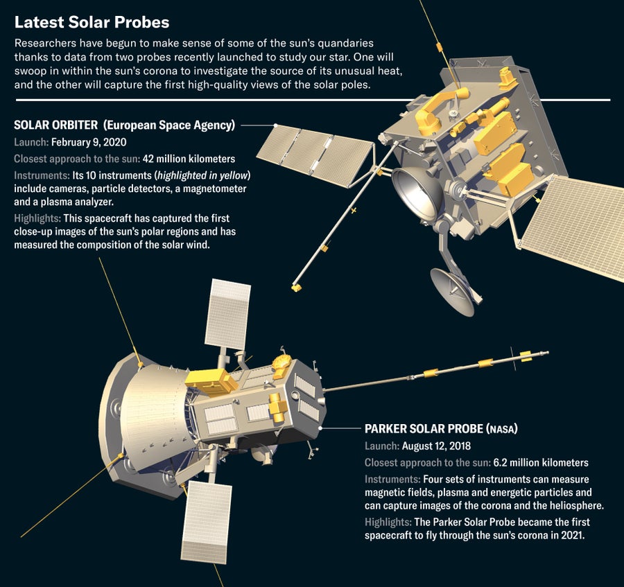 The two spacecraft are the latest in a series of about two dozen sun-observing spacecraft launched since 1961's Explorer 10; of those, 19 are still active, in addition to many solar observatories on Earth. The Parker Solar Probe and the Solar Orbiter will soon be accompanied by other solar-observing spacecraft and sounding rockets, which will observe the sun from Earth's atmosphere. In April 2025 NASA plans to launch the Polarimeter to Unify the Corona and Heliosphere, or PUNCH, which will make three-dimensional observations of the nascent solar wind as it grows and spreads throughout the solar system. Future spacecraft might revisit the sun at higher latitudes, a major challenge for spaceflight engineers but one that would thrill heliophysicists.